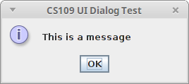 I have written a simple module called CS109UI that makes it possible to write programs with a simple graphical user interface without learning about the Swing library or worrying about event-based programming. We use this module for several projects in CS109.